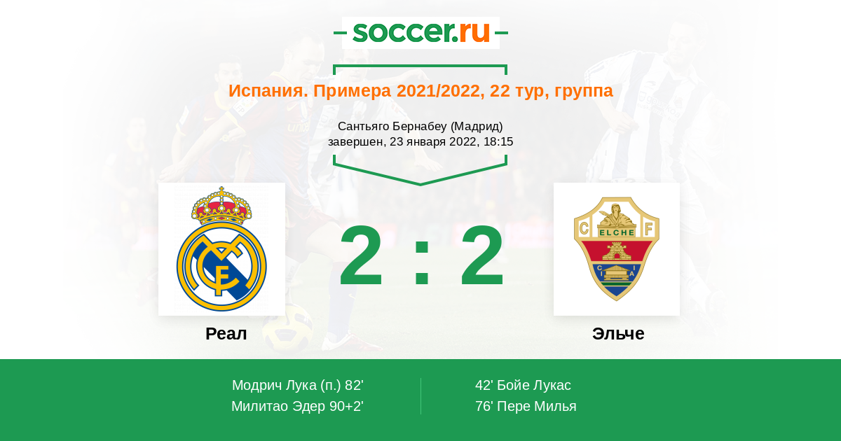 Третий раз за сезон мы увидим противостояние мадридского "Реала" и "Эльче" - два предыдущих "сливочные" выиграли с одинаковым счётом 2:1. На стыке 2021-го и 2022-го "бланкос" испытывали некоторые проблемы с результатом, допустив две осечки в матчах с "Кадисом" и "Хетафе", однако, на данный момент у мадридцев пять побед подряд во всех турнирах, в которых они наколотили 14 голов. С составом у "Реала" также полный порядок: Дани Карвахаль готов вернуться на поле после коронавируса, Эдер Милитао – после дисквалификации. В последних пяти очных встречах "Реал" четырежды обыгрывал "Эльче". Вполне вероятно. что данный исход мы увидим и на этот раз.