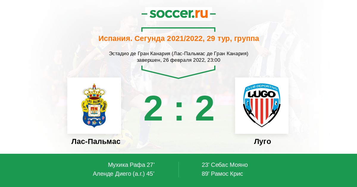 27' ГолЛоготип Лас-ПальмасМухика Рафа (9, н) (Логотип Лас-ПальмасВиера Хонатан (21, п)) - 1:1