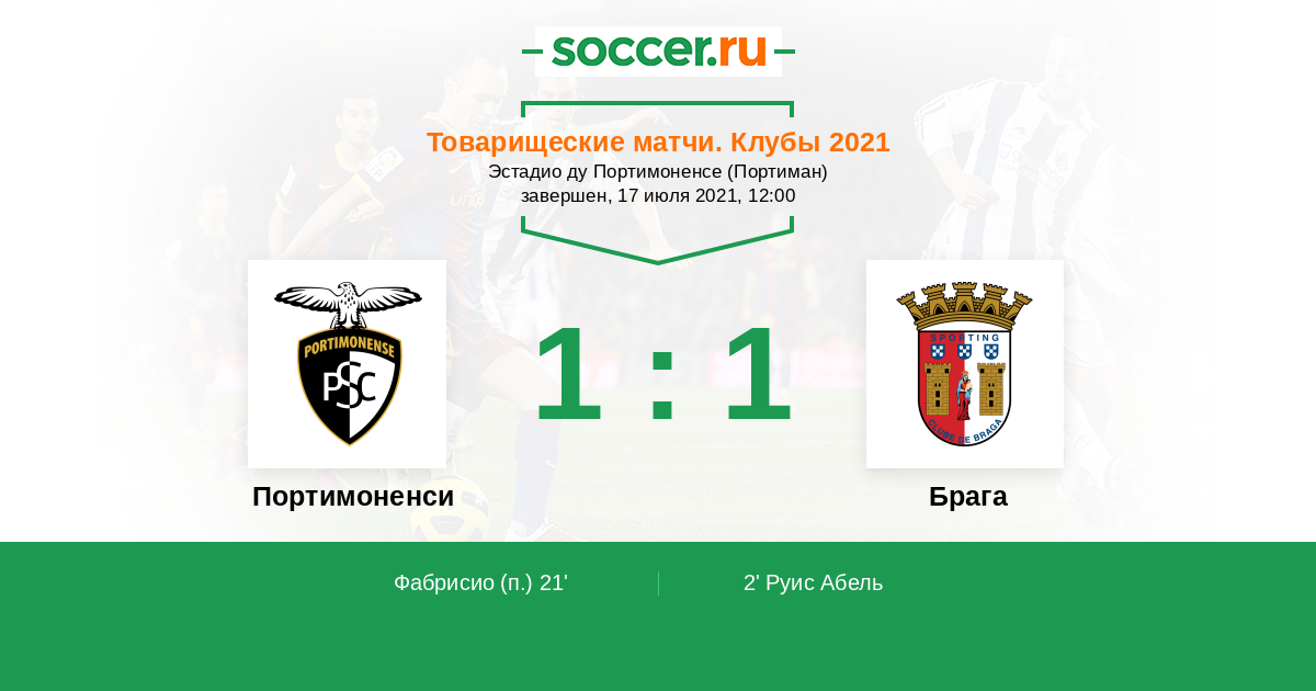 21' Гол с пенальтиЛоготип ПортимоненсиФабрисио - 1:1 (П)