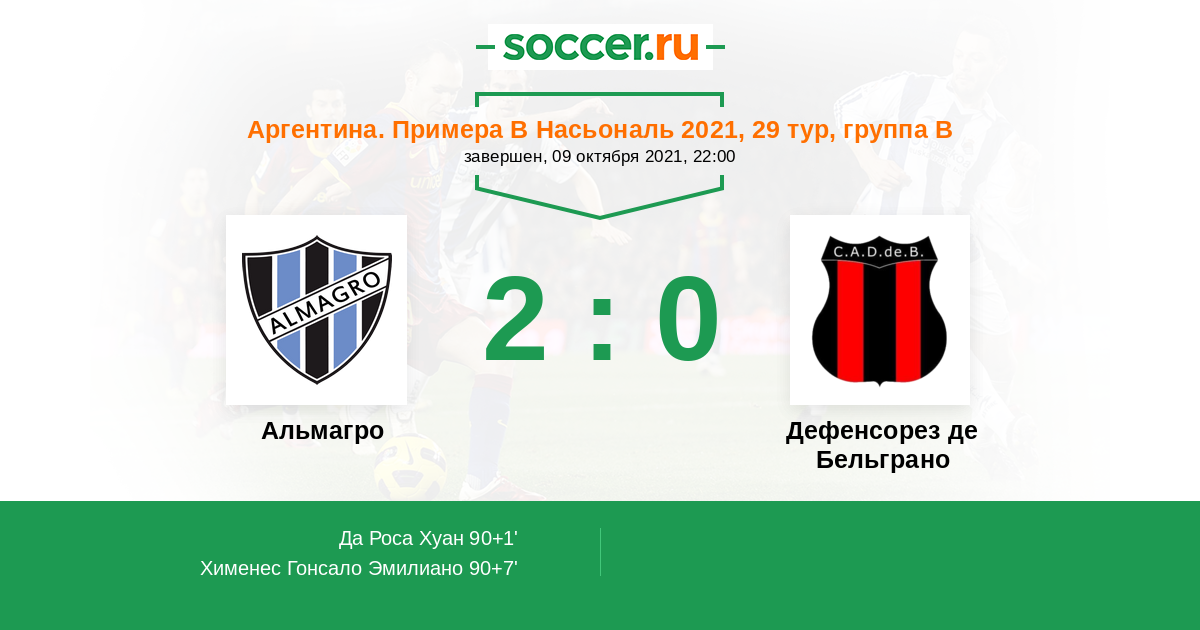 90+1' ЗаменаЛоготип Дефенсорез де БельграноГагги Энцо уходит с поля