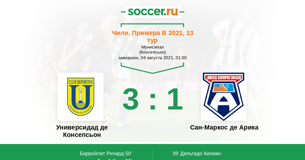 43' Желтая карточкаЛоготип Универсидад де КонсепсьонБарройлет Ричард получил ж.к.