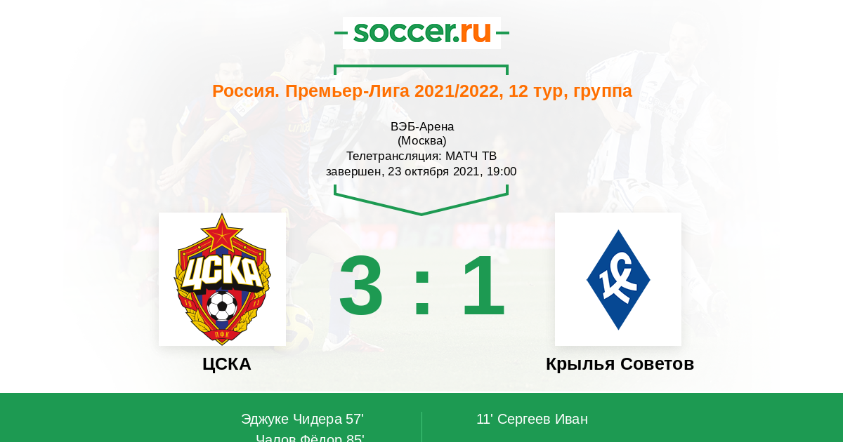 Спасибо футболистам ЦСКА за красивую победу над самарскими "Крыльями". Главный тренер ЦСКА Алексей Березуцкий сделал во втором тайме сразу три правильные замены для усиления атакующих действий команды : на поле вышли Кучаев, Дзагоев и Чалов (вместо Щенникова, Мухина и Ахметова). Все армейские футболисты проявили волю к победе и, проигрывая 0:1 после первого тайма, забили три гола в ворота самарцев во втором тайме и заслуженно победили. Красиво бил по воротам во втором тайме Иван Обляков из-за пределов штрафной площади, но вратарь самарцев сумел отразить мяч, летящий в "девятку", на угловой. После 12-ого тура РПЛ армейцы набрали 23 очка и теперь, в случае проигрыша "Зенита" московскому "Спартаку" в воскресном матче в Петербурге 24-го октября с.г., могут закрепиться на 2-ом или 3-ем месте. Это уже реальная возможность для ЦСКА включиться в гонку за чемпионский титул РПЛ в сезоне 2021/2022 годов. Хочется верить, что клуб ЦСКА постепенно налаживает командную игру. Болельщики "коней" могут быть довольны тем, что армейские футболисты стараются играть в атакующий футбол до самых последних секунд в матче! Возможно, что такой стиль игры армейцев - это заслуга нового главного тренера ЦСКА Алексея Березуцкого, который смог убедить игроков поверить в свои силы и возможности! С победой, армейцы!