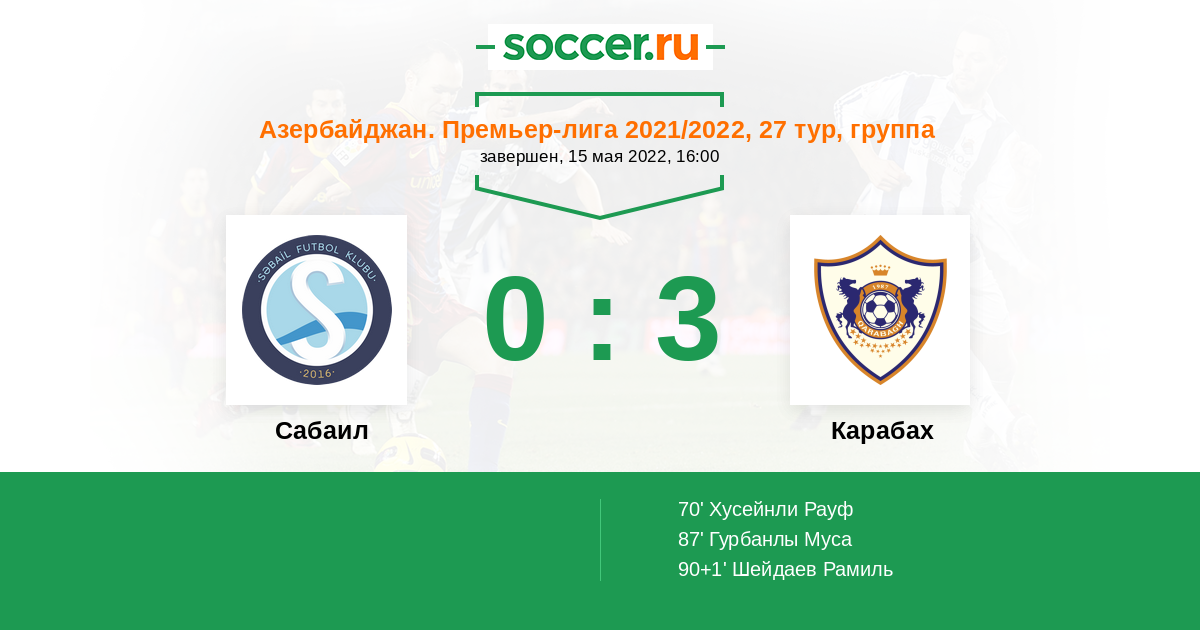 70' ГолЛоготип КарабахХусейнли Рауф (21) - 0:1