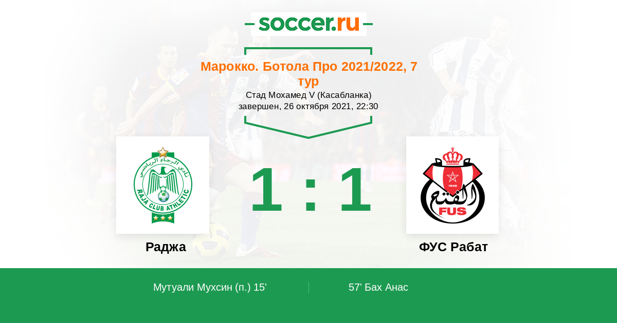 57' ГолЛоготип ФУС РабатБах Анас (3) - 1:1