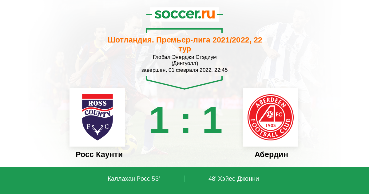 53' ГолЛоготип Росс КаунтиКаллахан Росс (8, п) - 1:1