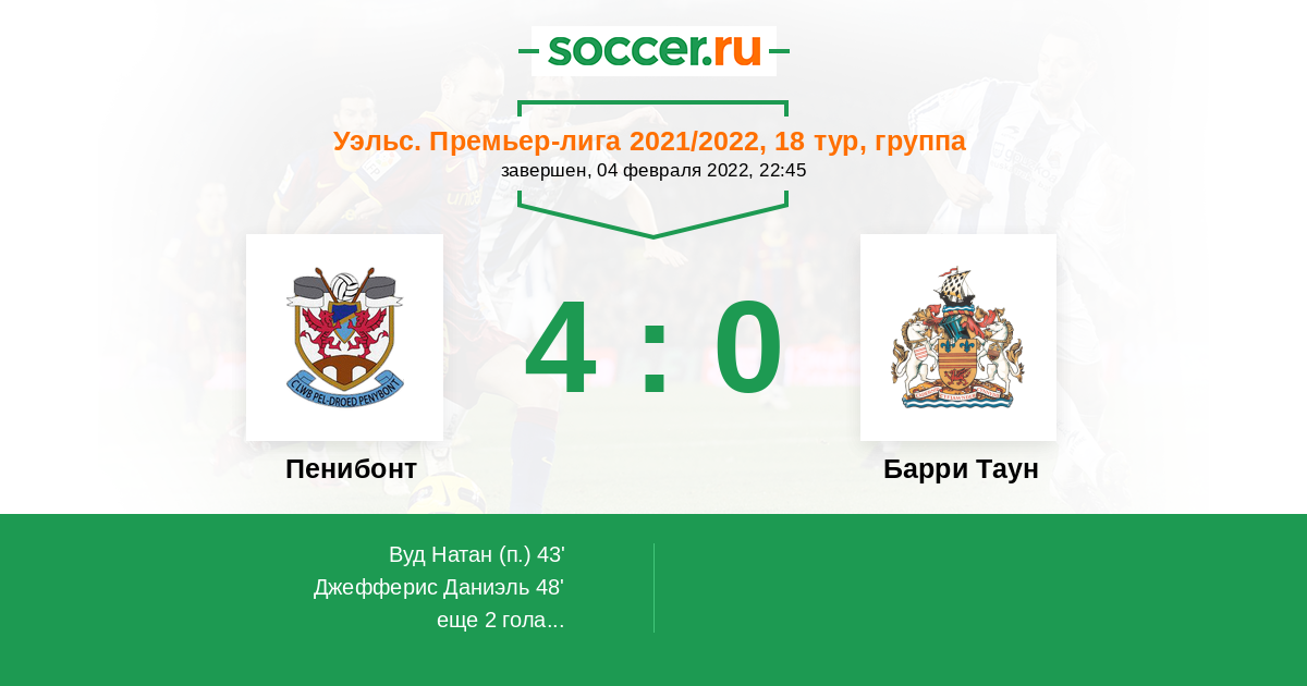 43' Гол с пенальтиЛоготип ПенибонтВуд Натан - 1:0 (П)