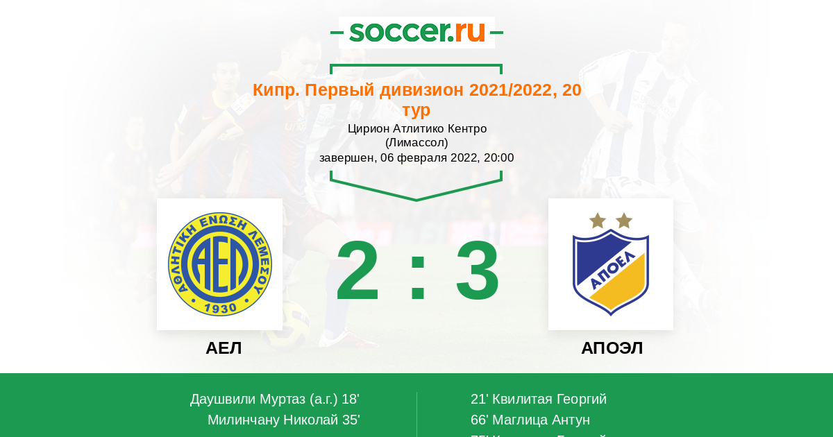 75' ГолЛоготип АПОЭЛКвилитая Георгий (11, п) - 2:3