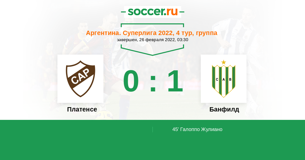 45' ГолЛоготип БанфилдГалоппо Жулиано (8, п) - 0:1