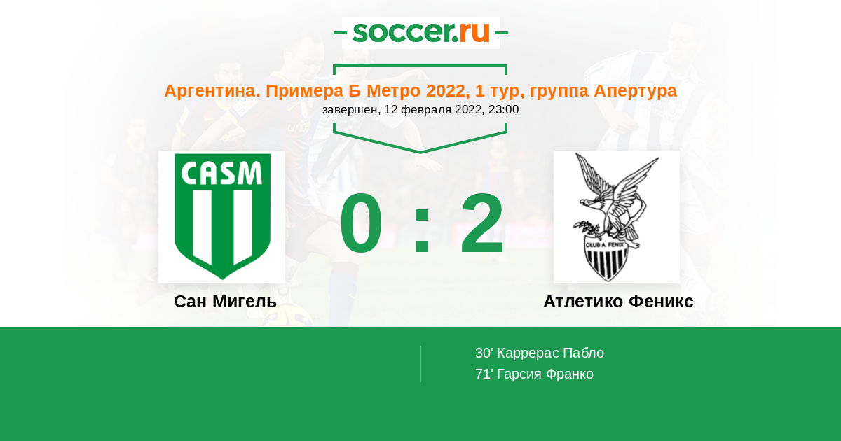79' ЗаменаЛоготип Атлетико ФениксГарсия Франко уходит с поля