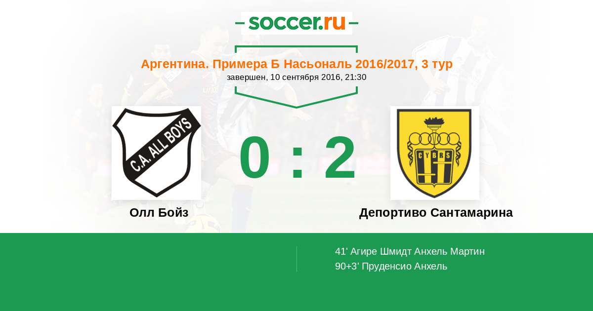 87' Желтая карточкаЛоготип Депортиво СантамаринаПруденсио Анхель получил ж.к.
