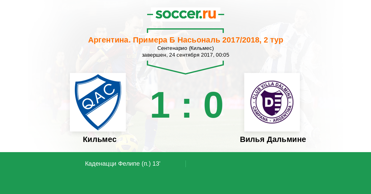 15' Желтая карточкаЛоготип КильмесКаденацци Фелипе получил ж.к.
