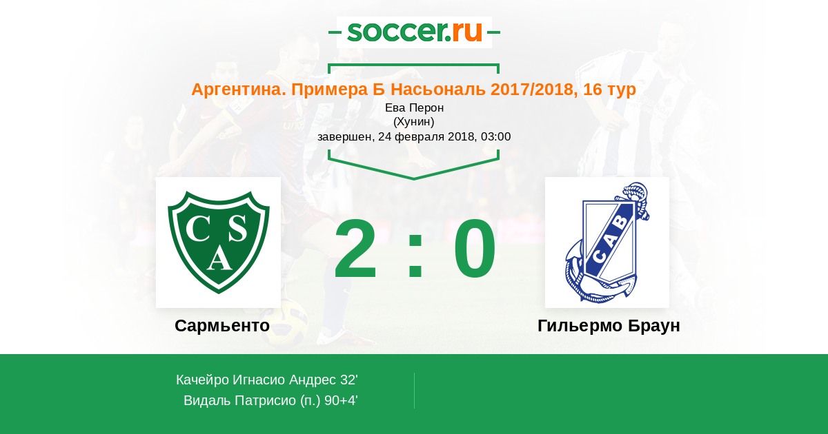 41' Желтая карточкаЛоготип Гильермо БраунСолис Луис Габриэль получил ж.к.