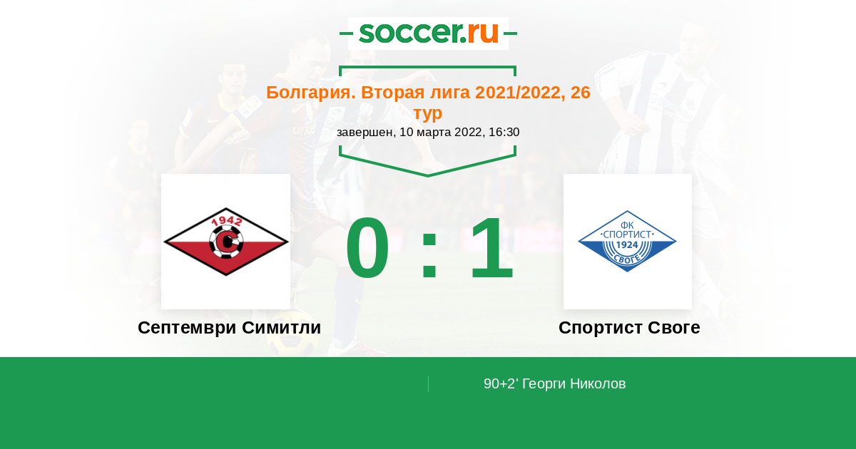 90+4' Желтая карточкаЛоготип Спортист СвогеГеорги Николов получил ж.к.