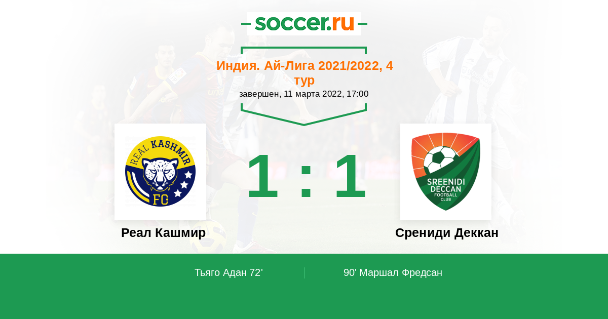 72' ГолЛоготип Реал КашмирТьяго Адан (9) - 1:0