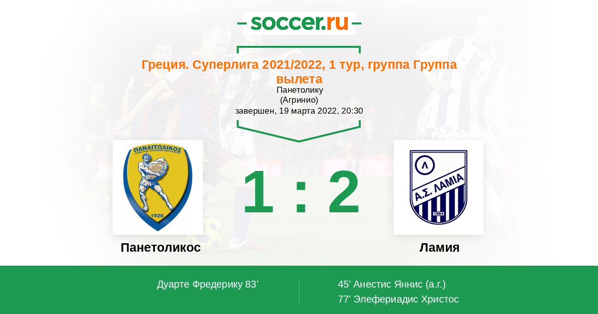 0 | Офсайды | 2 |