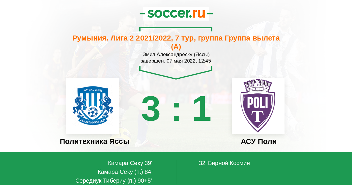 84' Гол с пенальтиЛоготип Политехника ЯссыКамара Секу - 2:1 (П)