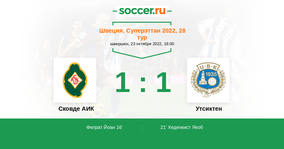 21' ГолЛоготип УтсиктенХеденкист Якоб (5, п) - 1:1