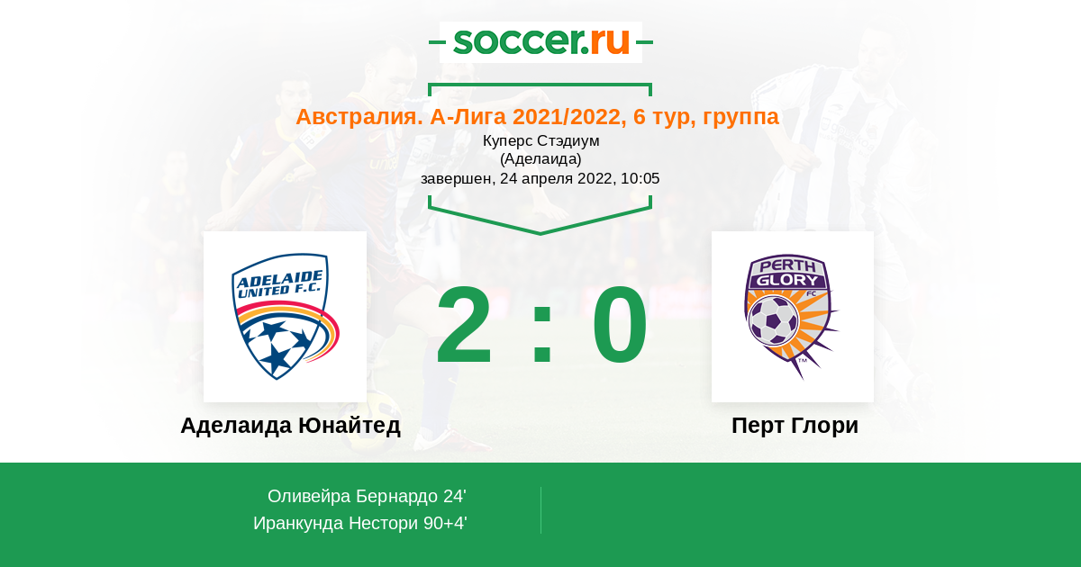 68' ЗаменаЛоготип Аделаида ЮнайтедОливейра Бернардо (31, н) уходит с поля
