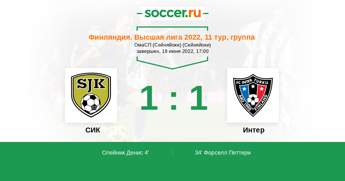 3 | Офсайды | 1 |