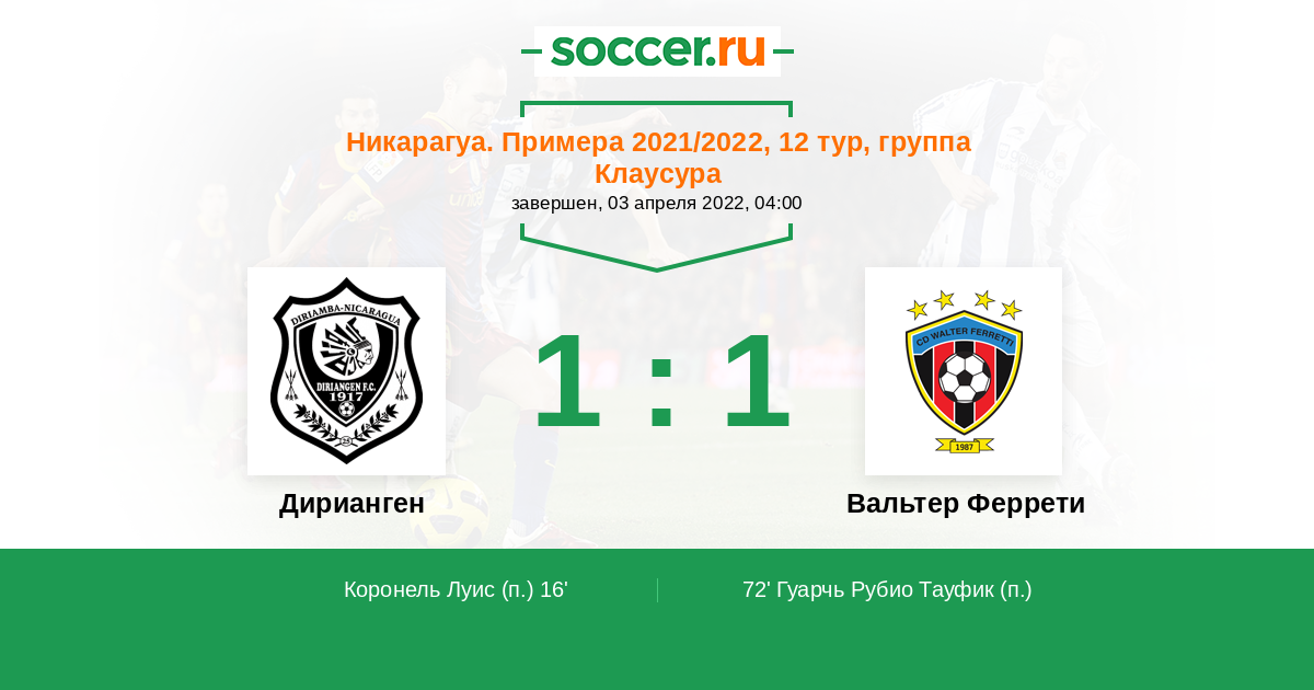 16' Гол с пенальтиЛоготип ДириангенКоронель Луис - 1:0 (П)