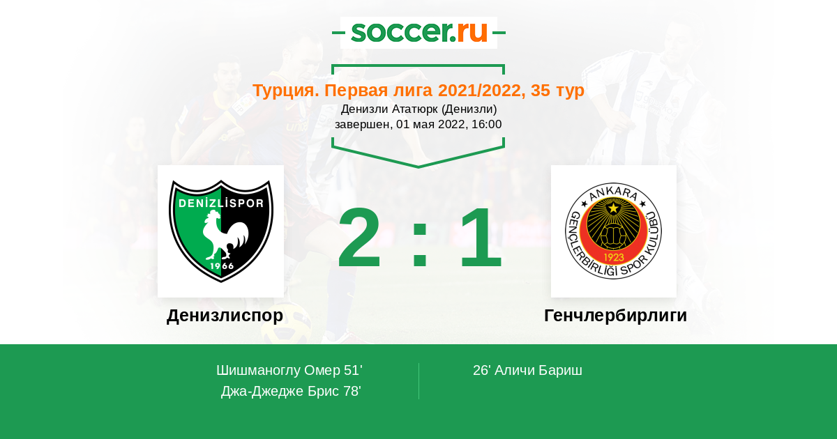 78' ГолЛоготип ДенизлиспорДжа-Джедже Брис (97, з) (Логотип ДенизлиспорДепе Ильхан (29, п)) - 2:1