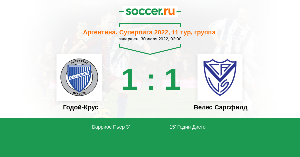 Годой-Крус - Велес Сарсфилд