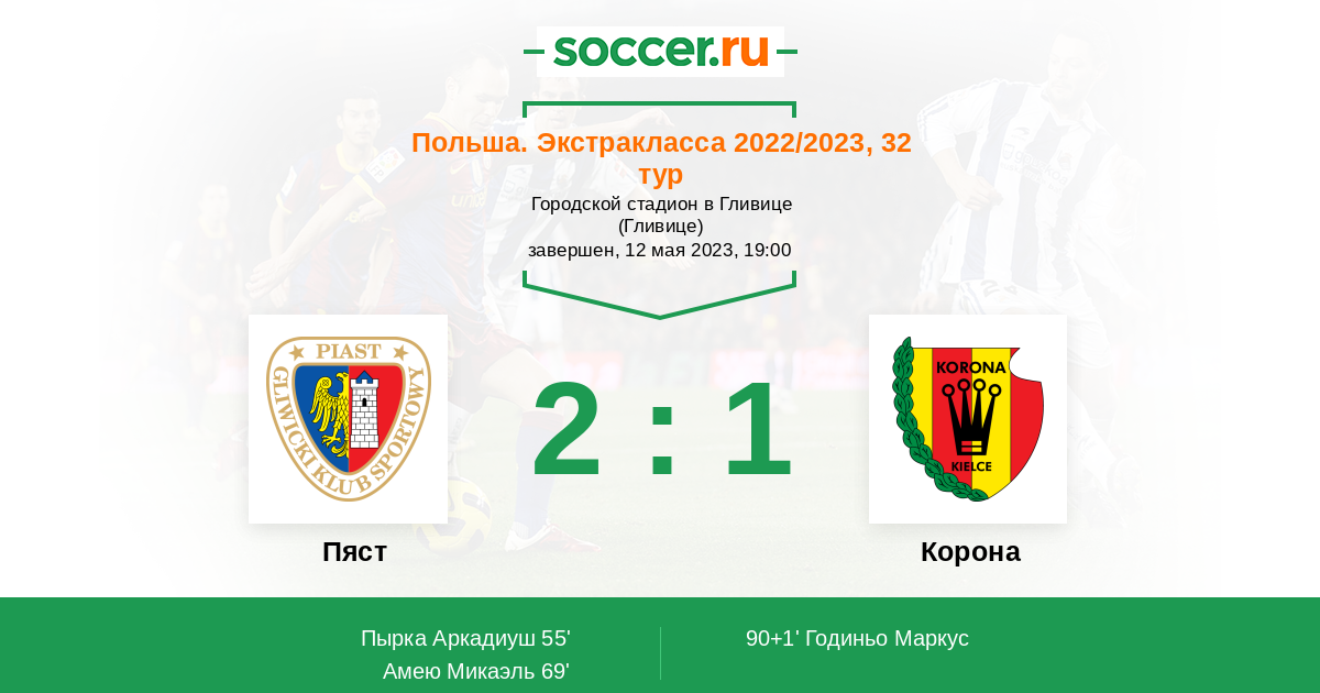 0 | Офсайды | 1 |