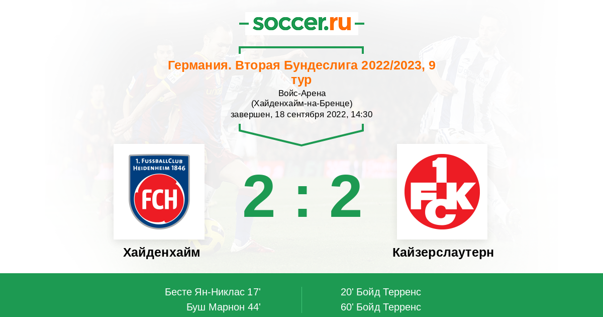 0 | Офсайды | 2 |