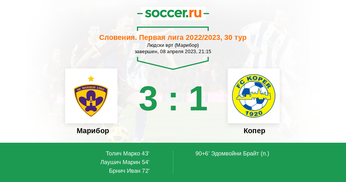 43' ГолЛоготип МариборТолич Марко (44, н) - 1:0