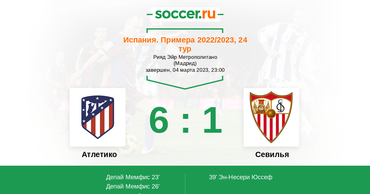 39' ГолЛоготип СевильяЭн-Несери Юссеф (15, н) (Логотип СевильяГуйе Папе (18, п)) - 2:1