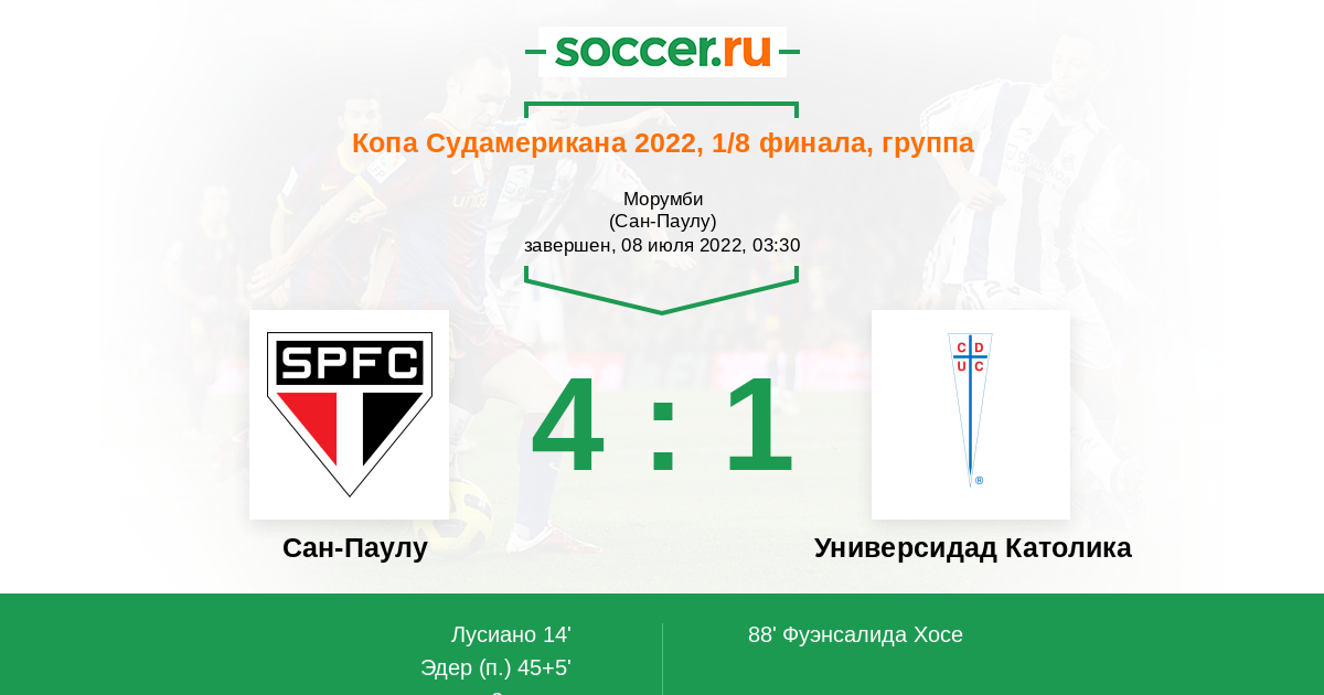 45+5' Гол с пенальтиЛоготип Сан-ПаулуЭдер (23, н) - 2:0 (П)