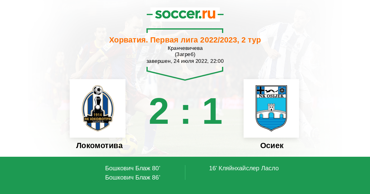 80' ГолЛоготип ЛокомотиваБошкович Блаж (13, п) (Логотип ЛокомотиваЧокай Энис (18, п)) - 1:1