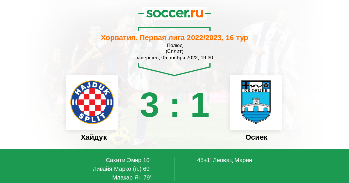 0 | Офсайды | 1 |