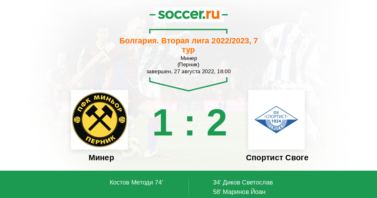 69' Желтая карточкаЛоготип МинерВасилев Венцислав получил ж.к.