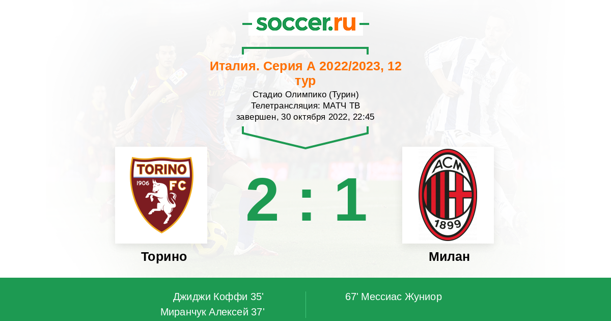 “Милан” в этом сезоне не очень убедителен в гостях – четыре победы, три ничьи и одно поражение. Но “Торино” в этом сезоне еще ни разу не обыгрывал топ-команду: здесь поражение и от “Аталанты” (1:3), и от “Интера” (0:1), и от “Наполи” (1:3) и даже от “Ювентуса” (0:1), но удалось зацепить ничью с “Лацио” (0:0). При встрече с соперниками выше классом видны все недостатки открытого футбола туринцев.