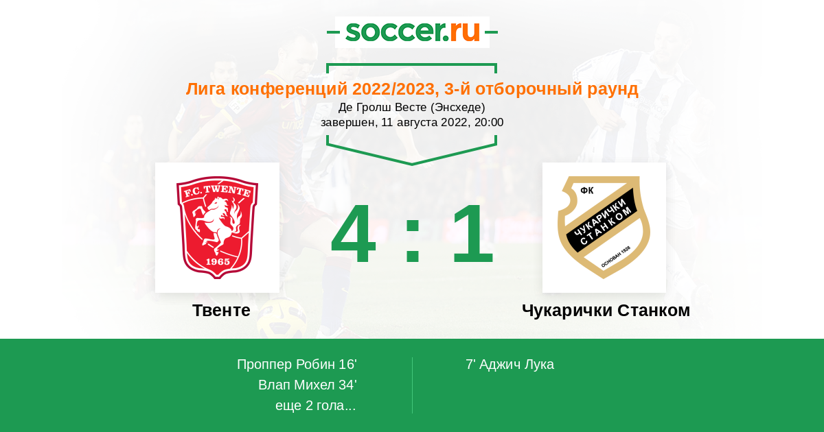 Твенте - Чукарички Станком