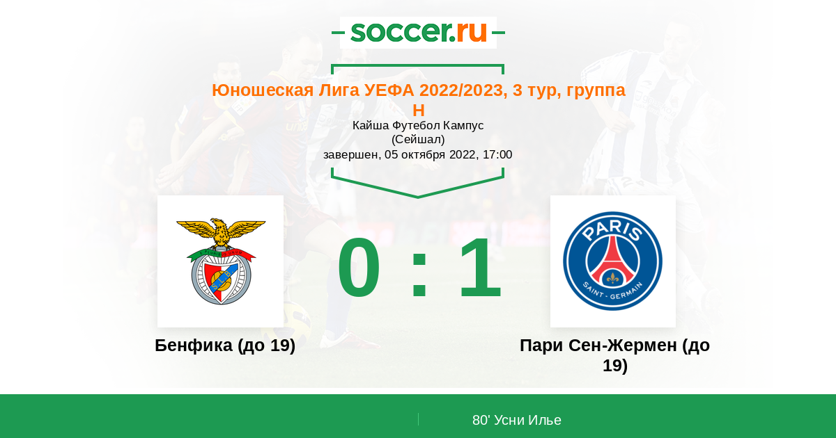 Бенфика (до 19) - Пари Сен-Жермен (до 19)