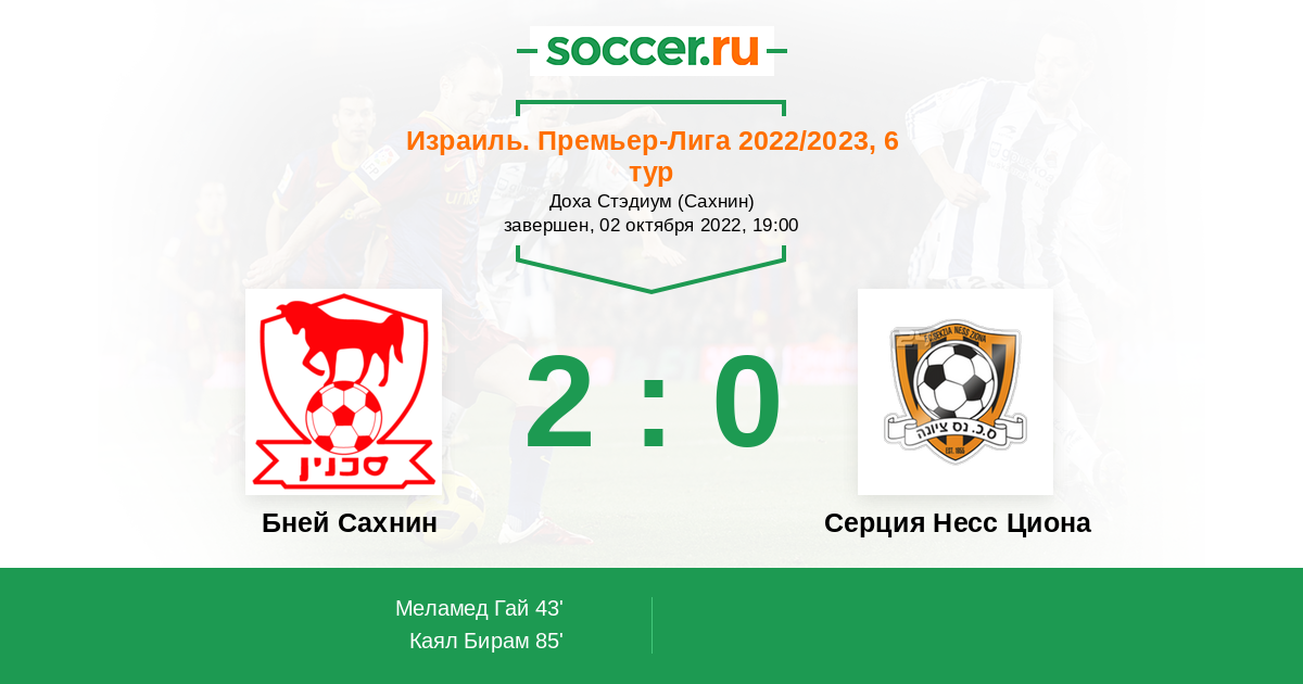 43' ГолЛоготип Бней СахнинМеламед Гай (18, н) - 1:0