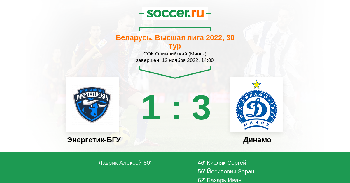 80' ГолЛоготип Энергетик-БГУЛаврик Алексей (55, з) - 1:3
