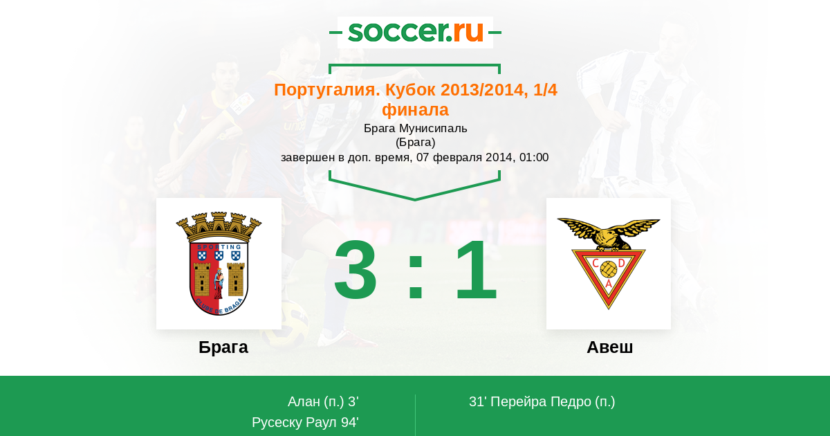 31' Гол с пенальтиЛоготип АвешПерейра Педро - 1:1 (П)