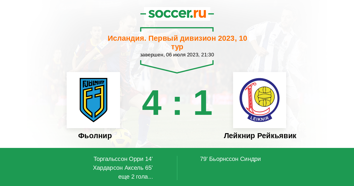 67' ЗаменаЛоготип Лейкнир РейкьявикБриньяр Хлодверссон уходит с поля