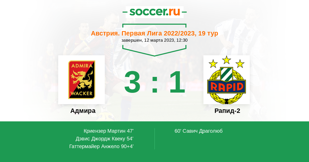 47' ГолЛоготип АдмираКриензер Мартин (15, н) - 1:0