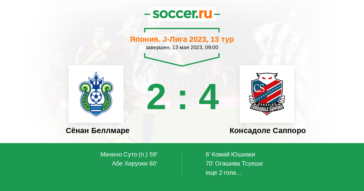 75' ГолЛоготип Консадоле СаппороАсано Юя (18, п) (Логотип Консадоле СаппороОгашива Тсуеши (19, н)) - 2:3