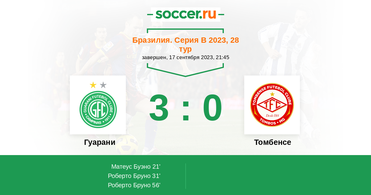 56' ГолЛоготип ГуараниРоберто Бруно (27, п) (Логотип ГуараниАраухо Лукас (21, п)) - 3:0