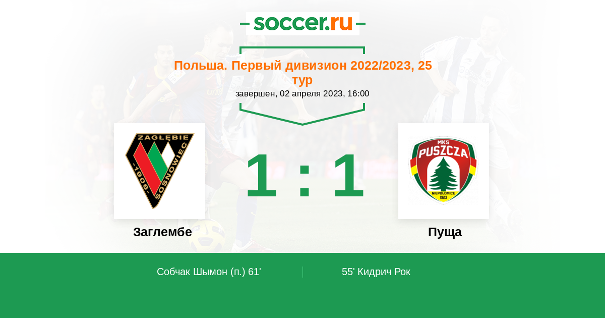 61' Гол с пенальтиЛоготип ЗаглембеСобчак Шымон - 1:1 (П)