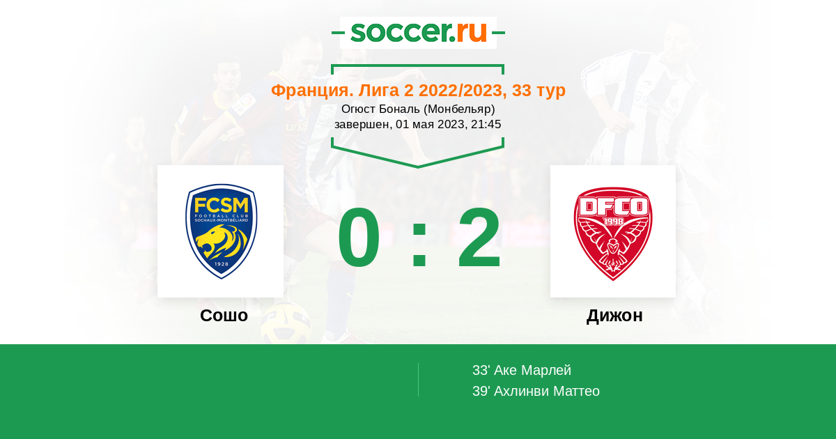 0 | Офсайды | 3 |