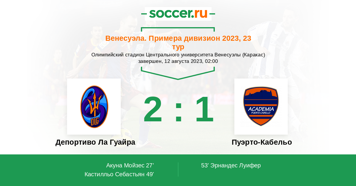 27' ГолЛоготип Депортиво Ла ГуайраАкуна Мойзес (33) - 1:0