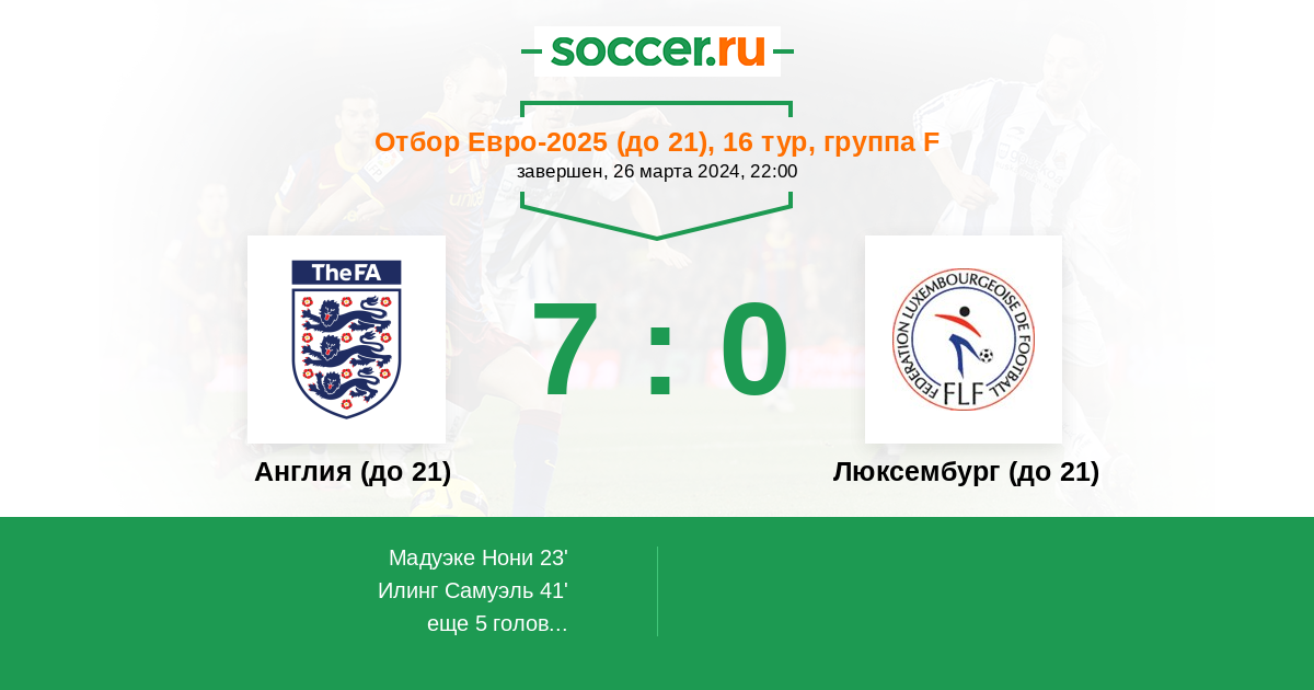 69' ЗаменаАнглия (до 21)Макати Джеймс (10) уходит с поля