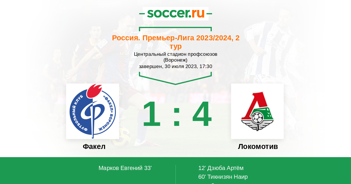 Фантомы прошлого года в судействе матча налицо. Первый тайм. Факел играет настойчиво, Локомотив отбивается. Одна из контратак Локомотива приводит к голу. Но с нарушением. Джюба был первым на мече оттолкнув защитника. Казарцев засчитывает гол. В одной из многочисленных атак Факела, защитник Локомотива валит Маркова в штрафной. Свистка судьи нет. Он ведь даёт играть)) Защитник Локомотива играет рукой в мяч, летящий в сторону ворот. Свистка нет, ВАР молчит. Судья же даёт играть)))
