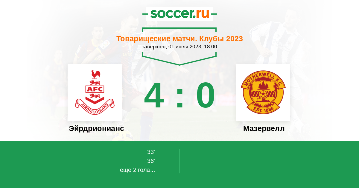 36' ГолЛоготип ЭйрдриониансJ. O'Connor - 2:0
